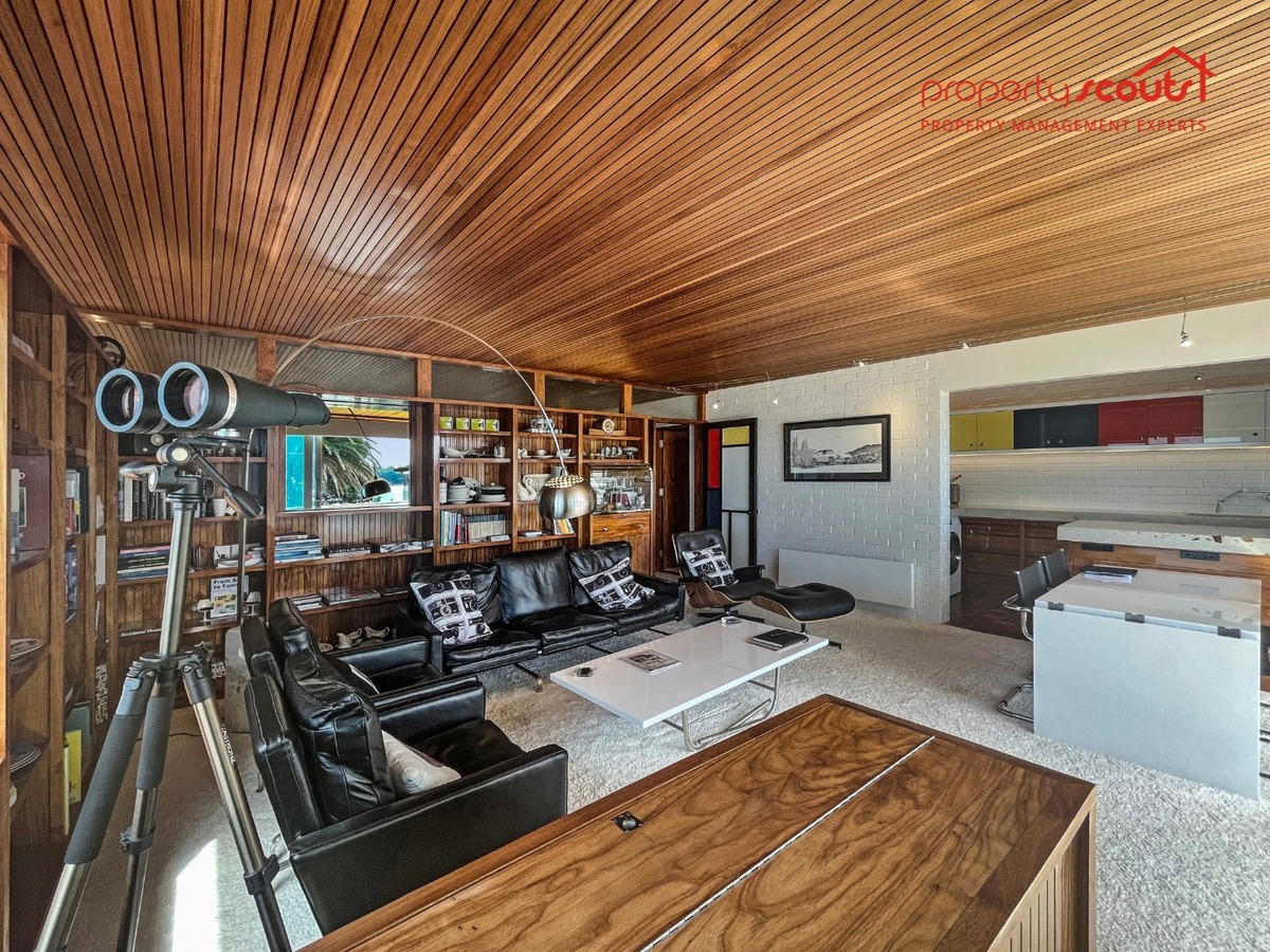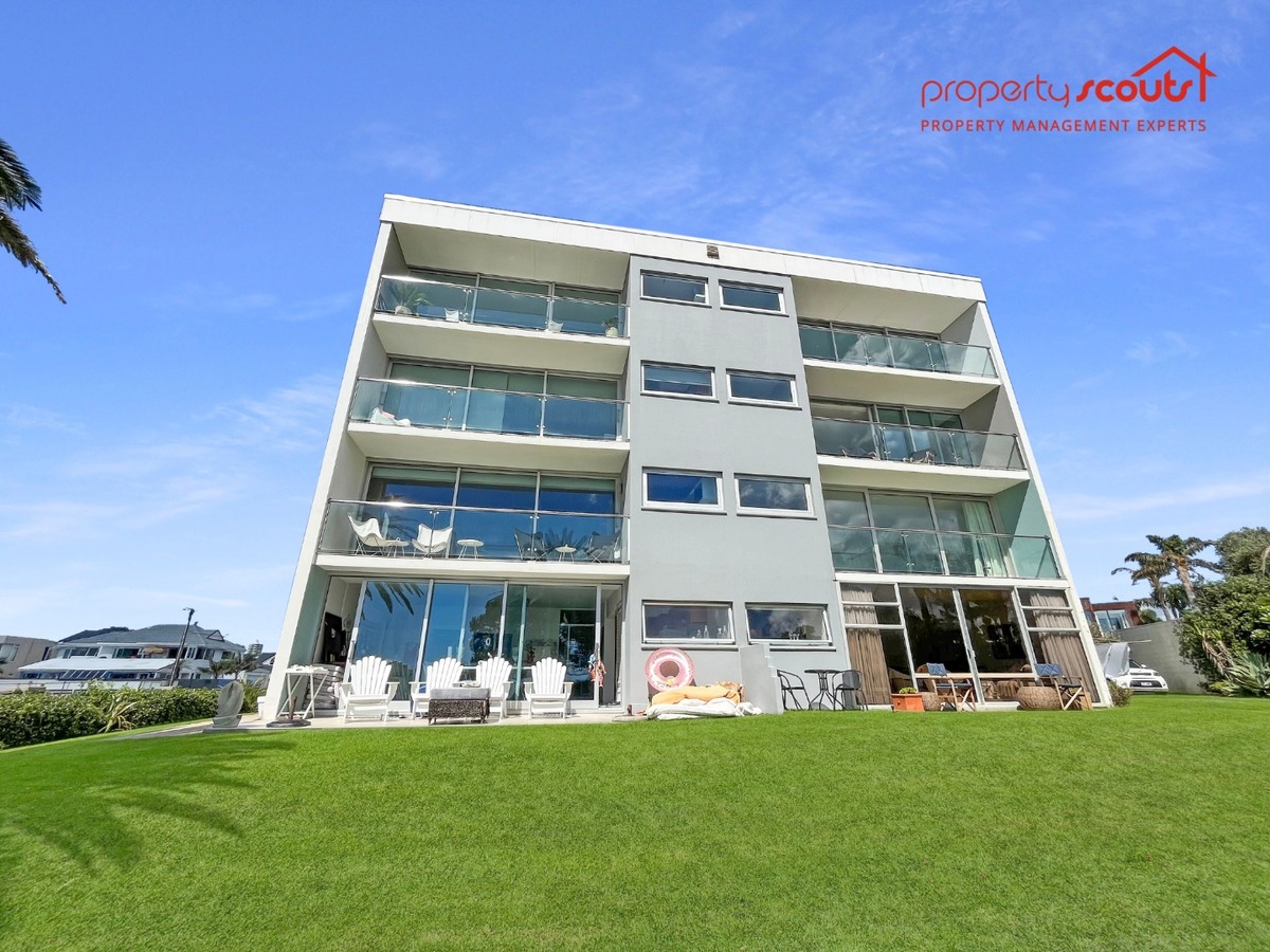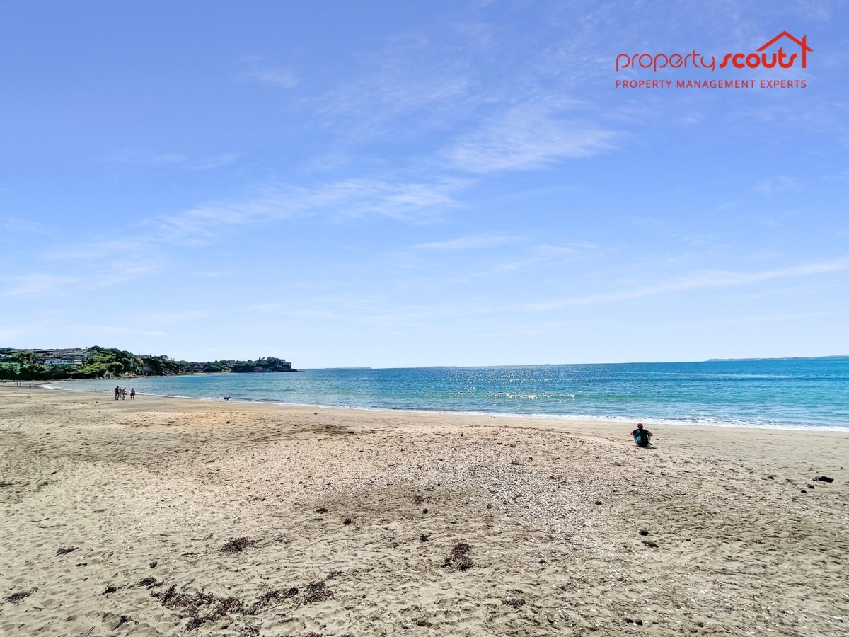 The property is a fully furnished mid-century apartment right on the Milford beachfront. No expense has been spared on the quality interior, with the space maximised in every area and designer furnishings throughout. Your breath is taken away from the moment you step into the property, with well-designed hall storage leading you to the large master with views over to Rangitoto.