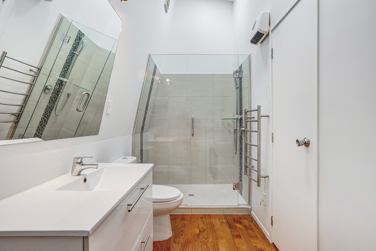 - Combined bathroom and laundry with vaulted ceiling and roof windows