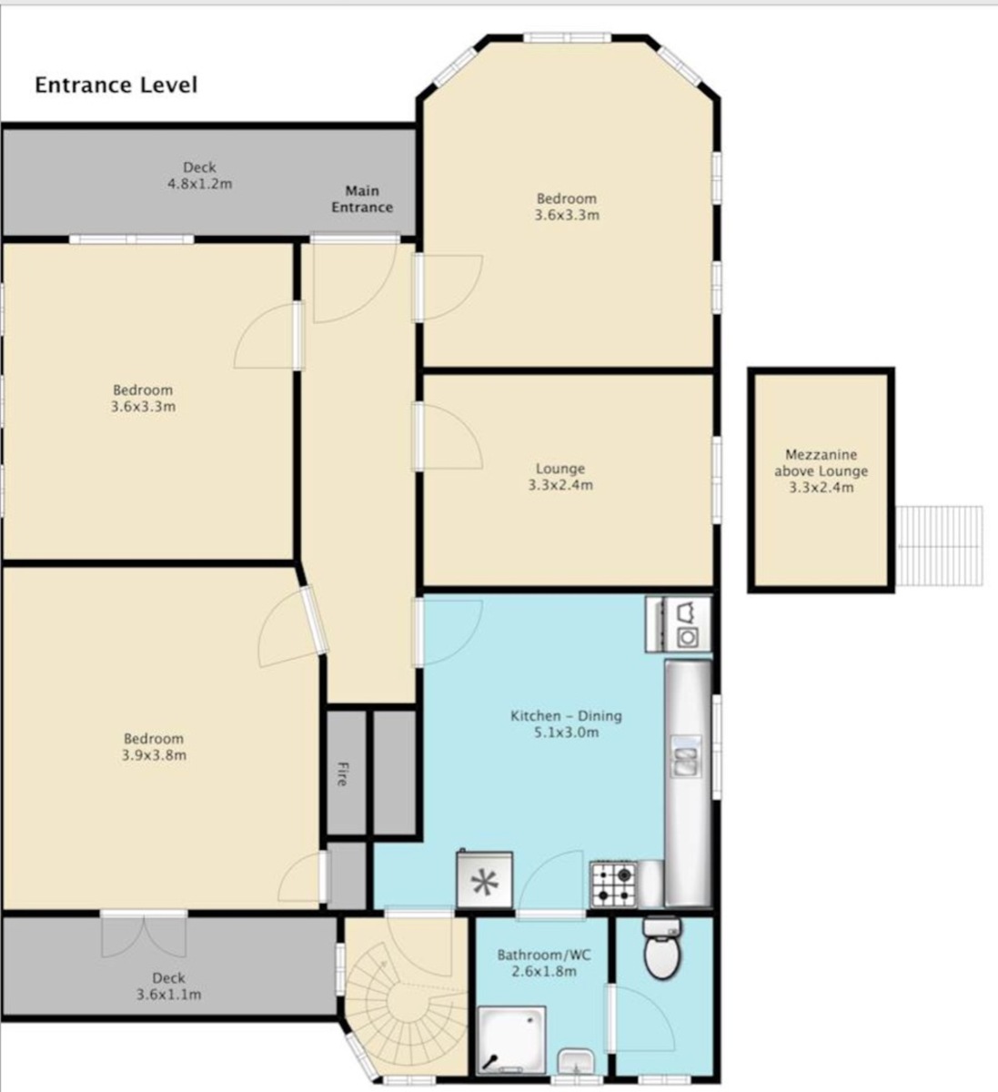 This sunny townhouse comes with covered decks at the front and back of the property; giving you that great indoor-outdoor flow throughout the year. It is 256m2 split over 3 levels and has space for the whole family. There are 3 bedrooms with an option for a 4th on the ground floor; which is serviced