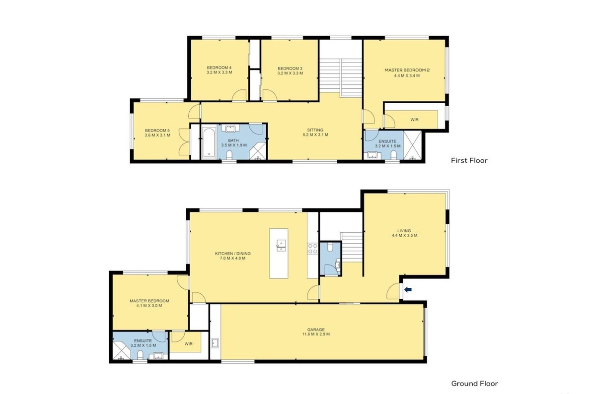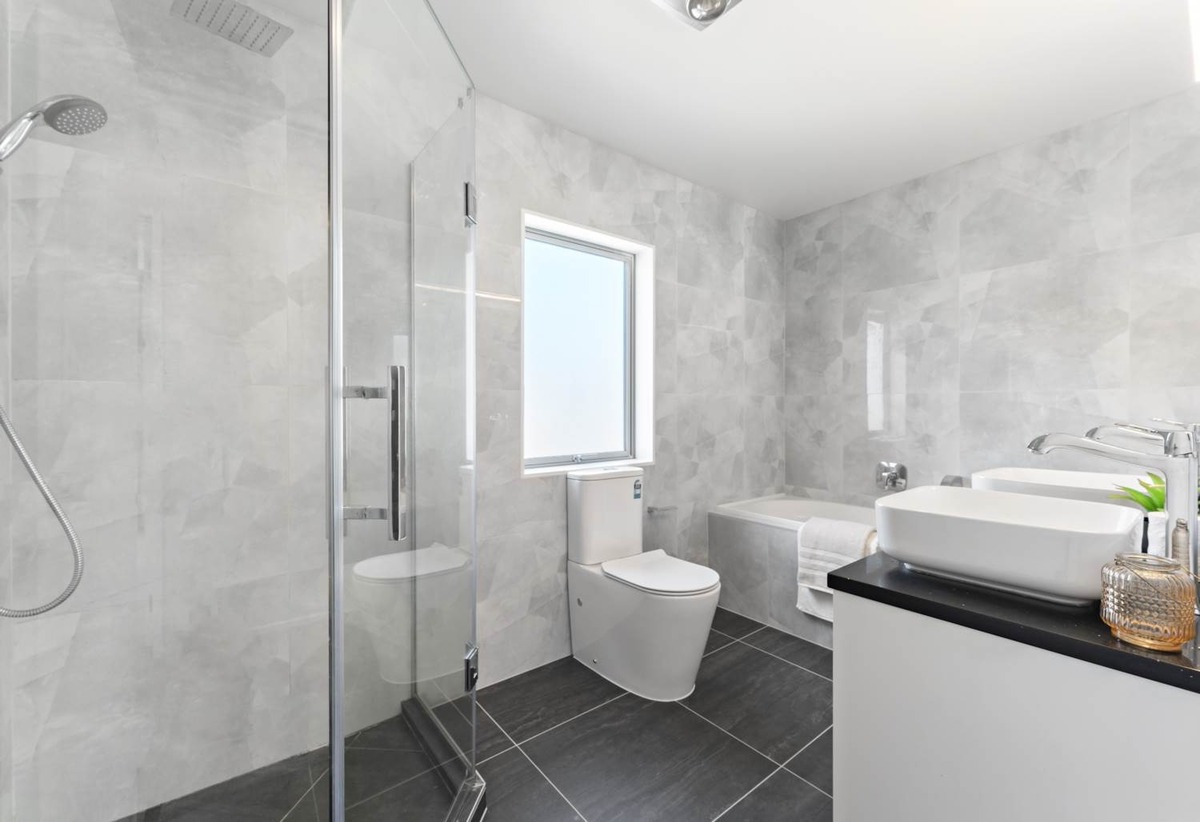 • 5 Bedrooms – Downstairs: 1 bedroom with ensuite (shower) + walk-in wardrobe; Upstairs: 4 bedrooms including a master with ensuite (shower) + walk-in wardrobe