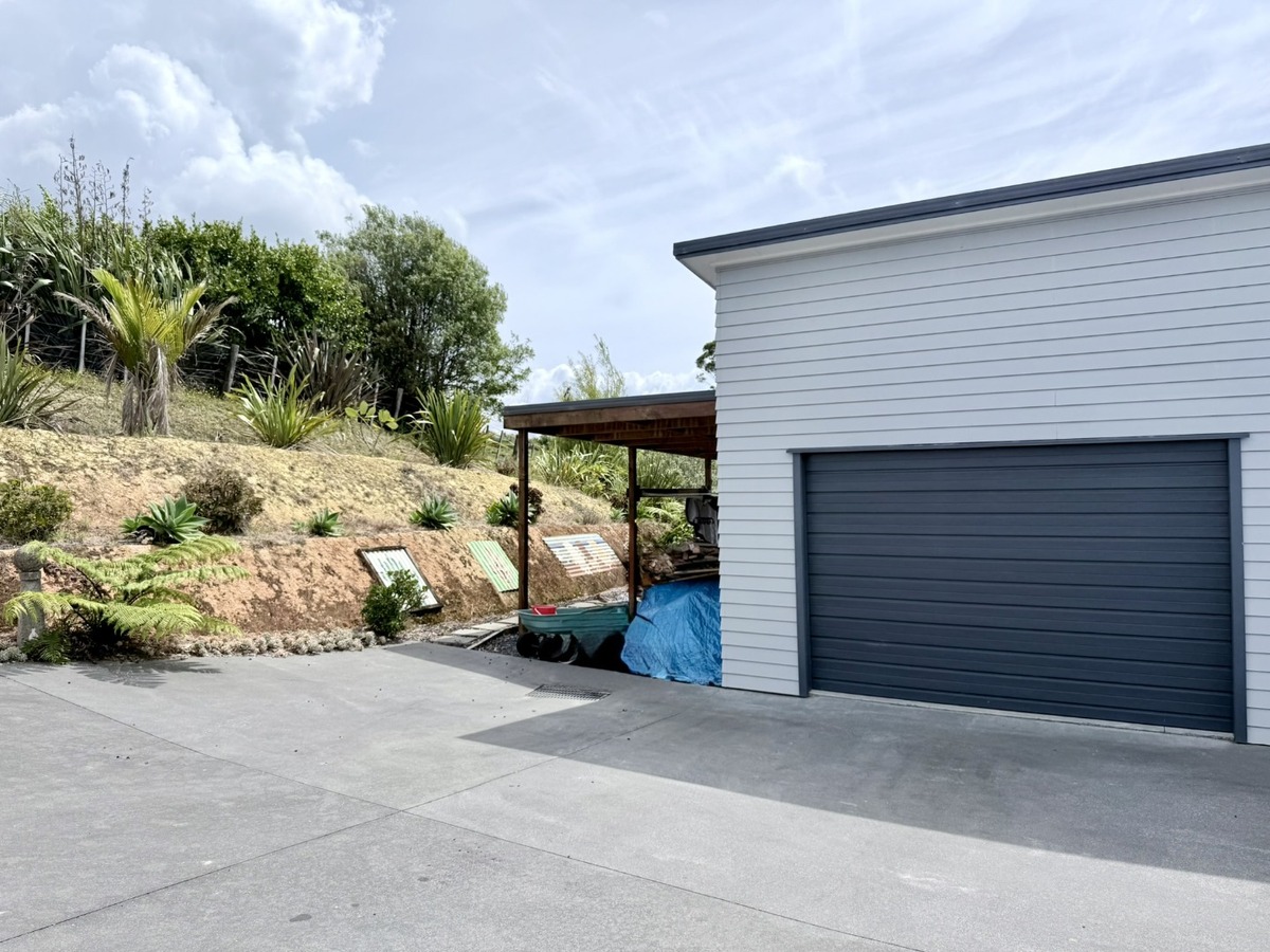 Outside, beautifully landscaped, low-maintenance gardens surround the home, with a kiwi zone adding to the lifestyle appeal. A single garage, carport, and ample off-street parking provide plenty of space for vehicles, all within the privacy of this elevated rural property.