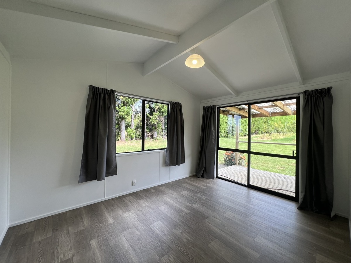 Nestled in a lemon orchard and just 15 minutes from Kerikeri township (conveniently located off SH10), this freshly renovated two-bedroom cottage offers sunny, relaxed living in a peaceful rural setting.