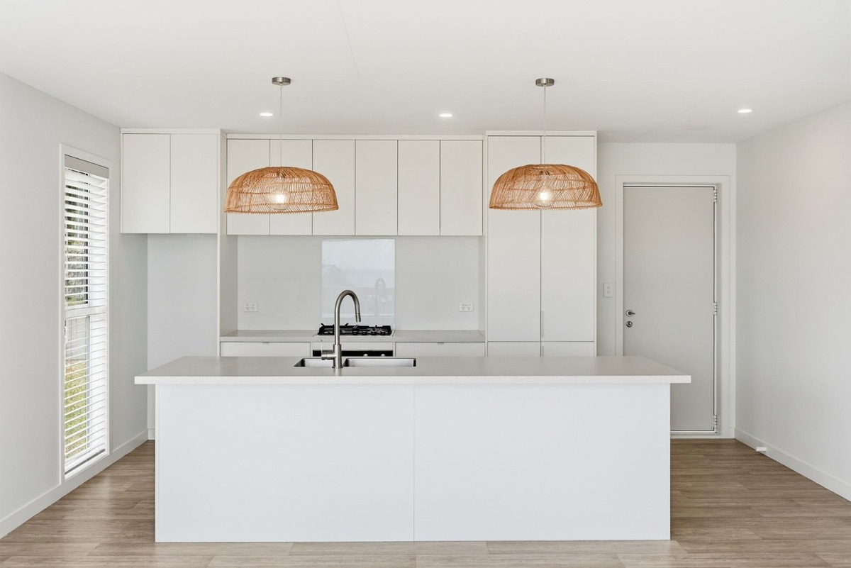 Designed for easy living, the light-filled open-plan kitchen, dining, and living area flows seamlessly, creating a welcoming space for both everyday life and entertaining. Subtle sea views add to the sense of calm and connection to the surrounding coastal environment.