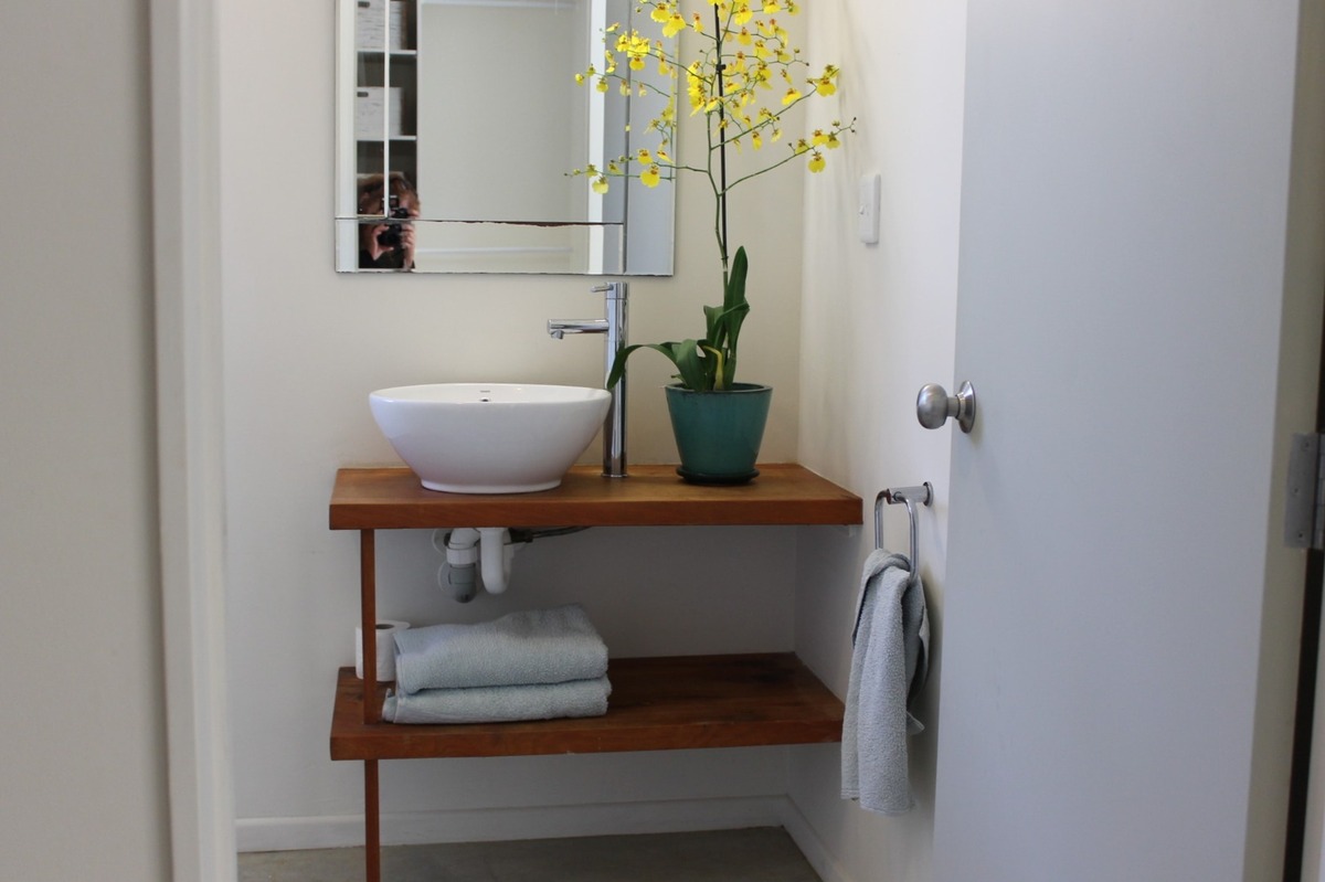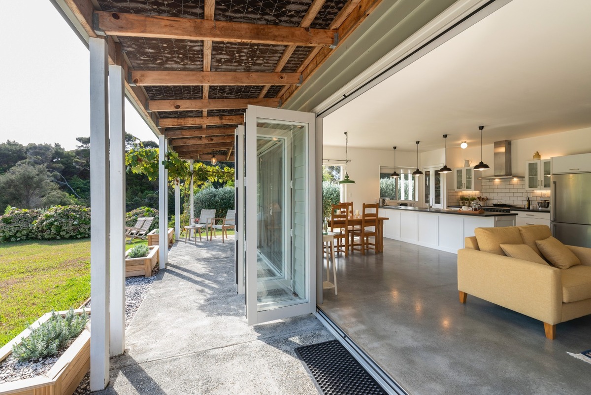 Inside, you’ll find high ceilings and polished concrete floors that give the home a modern edge while retaining warmth and character. Two generous bedrooms open directly onto the veranda, including a master with ensuite. A large separate bathroom incorporates the laundry for added convenience.