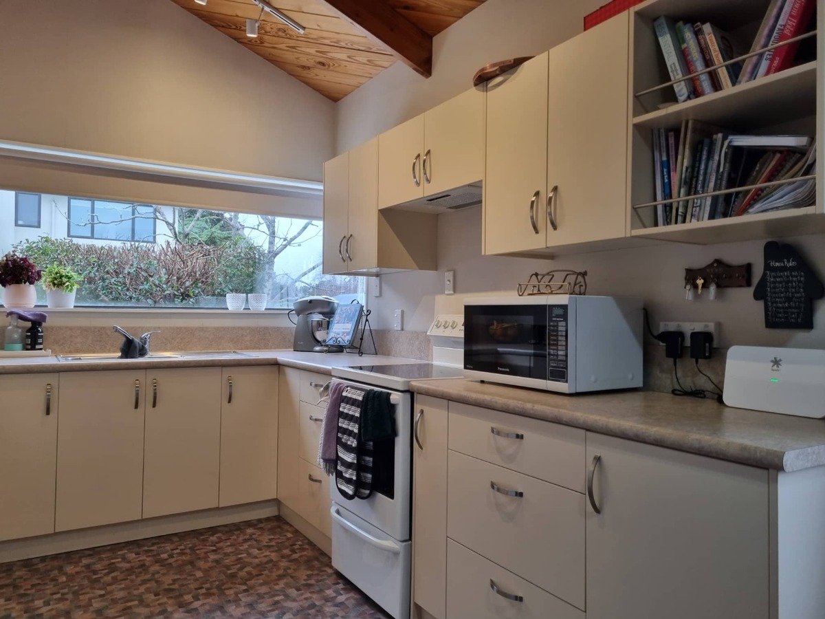 Inside is relatively open and spacious. A cathedral ceiling give the living area an open feel and there's a warm, conservatory adjacent this area. The kitchen features an electric stove with rangehood and a large, corner window to let the sun in. The property is warmed by a gas, central heating system with radiators in each room including their own temperature control. The bathroom is roomy with a corner shower unit, toilet and mirror cupboard. There is a separate laundry area in the entranceway and a third room as you enter from the garage, which would be suitable as an office or small third bedroom. Both main bedrooms are double in size with wardrobe storage.