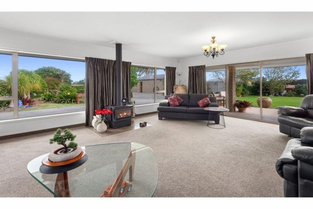 This modern single-level home features a light-filled lounge with wood burner and heat transfer system, plus a heat pump for year-round comfort.