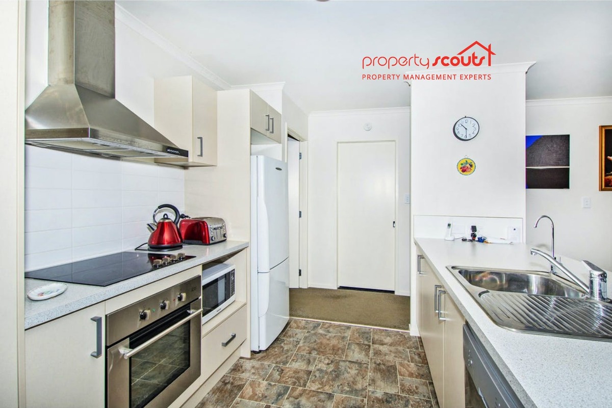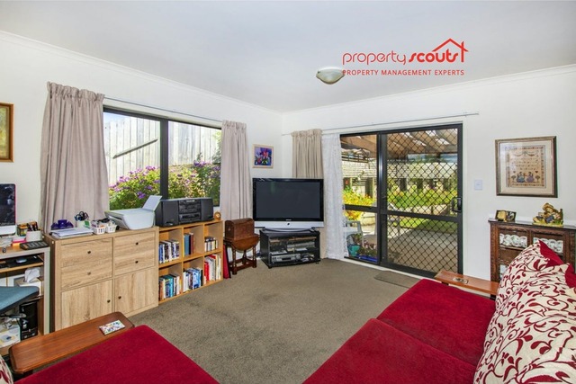 This three-bedroom home is tucked away up a driveway in a quiet no-exit street on an easy care section.
